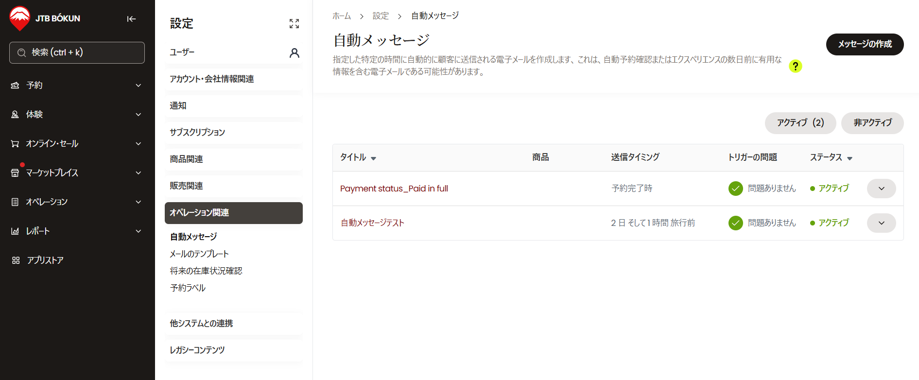1.設定>オペレーション関連>自動メッセージをクリックします。