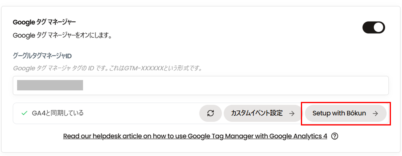 1.JTB BÓKUNとGoogleタグマネージャーとの設定において、GoogleタグマネージャーIDが必要です。