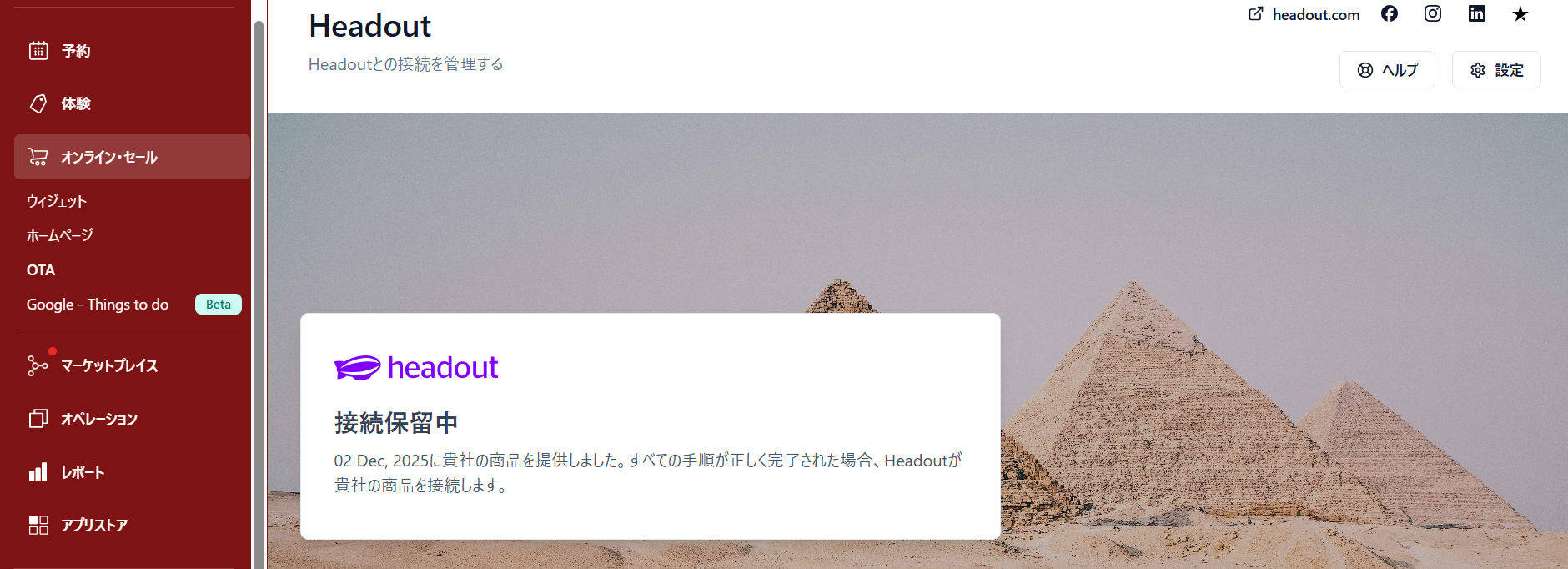 Headoutと接続した後