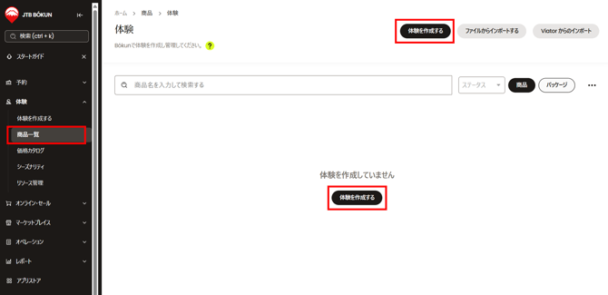自社ウェブサイトなどの販路で体験商品を販売するためには、まずJTB BÓKUN上で体験商品を作成する必要があります。