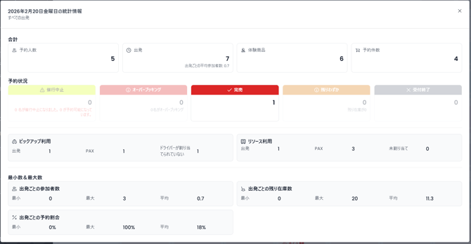 完売、残りわずか、閉鎖などの予約状況がより直感的に確認できるようになりました。 - 統計情報の提供: